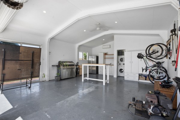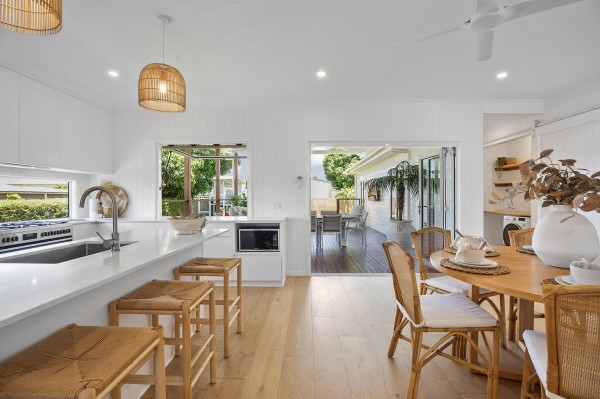 - Open-plan living with high ceilings, engineered timber flooring, and VJ groove walls in keeping with the character and original style of the home