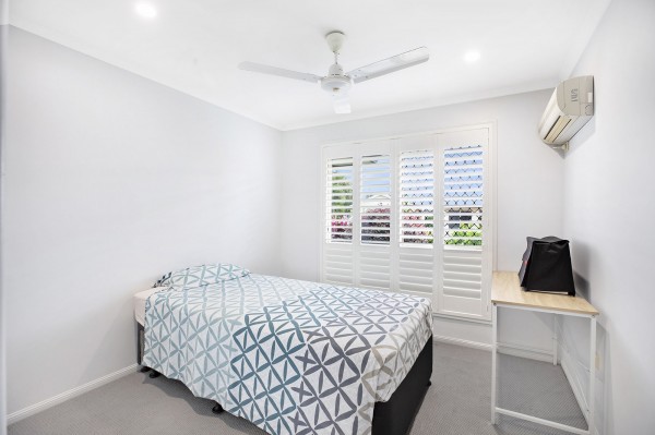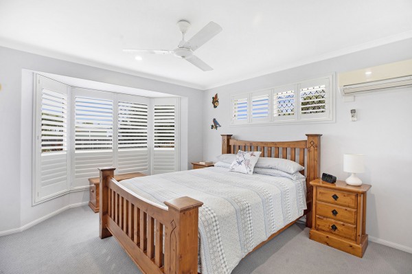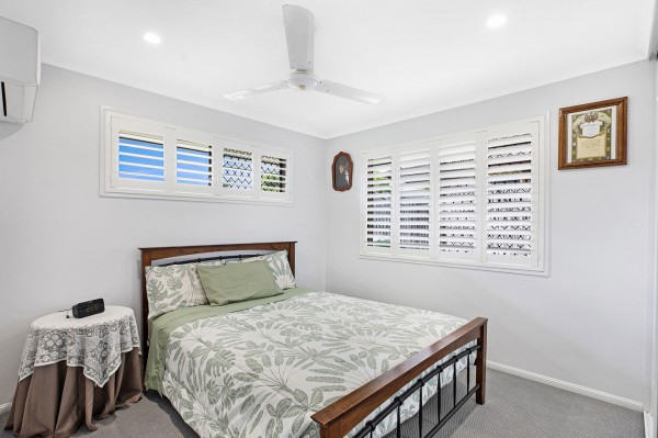 - Three bedrooms, each with built-ins, air conditioning, fans and shutters; master includes a contemporary ensuite