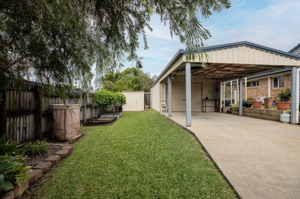 - Gated side access leads to a powered single-bay shed/workshop with fans, an additional carport, and a low-maintenance yard.