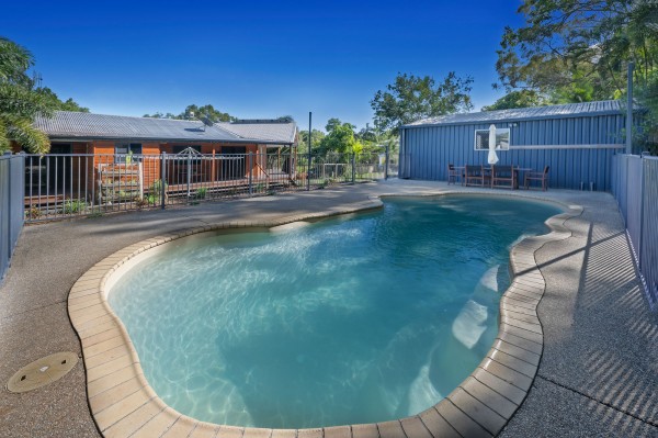 Outdoors, the property features an impressive 8m x 6m Colorbond shed with a mezzanine level-ideal for storage or a workshop-and a large, beautifully shaped inground swimming pool.