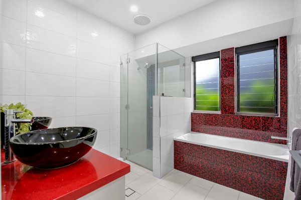 - The spacious master suite features a walk-in robe, ensuite with spa bath and double vanities, plus direct access to your private backyard