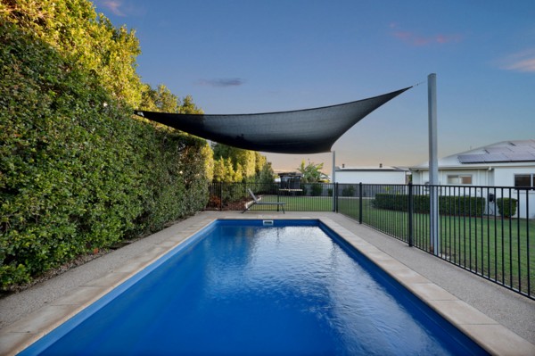 - Two-bay shed with awning providing additional storage, workshop potential, or poolside entertaining space