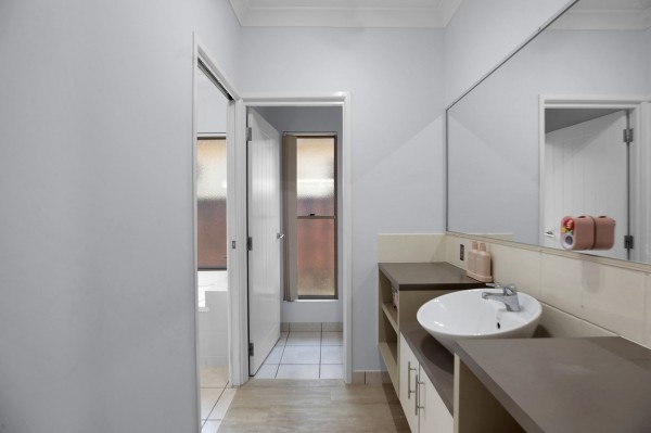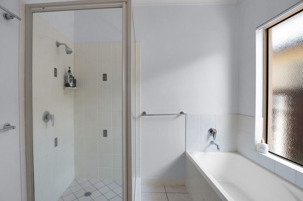 - Family bathroom cleverly designed with separate toilet and vanity for busy households