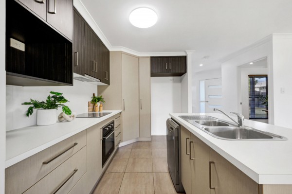 - Kitchen features island bench, corner pantry and stylish two-tone cabinetry
