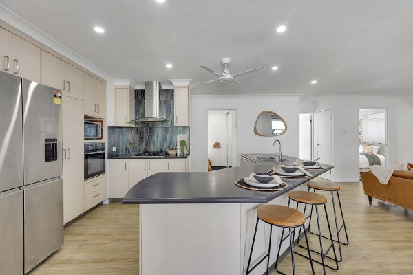- Open-plan kitchen, dining and lounge flowing seamlessly to the outdoor entertainment area