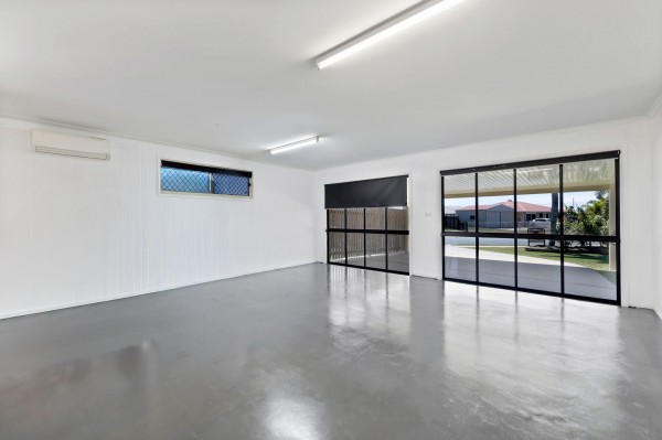 - There is a large second living/multi-purpose room that has a freshly painted floor and air-conditioning