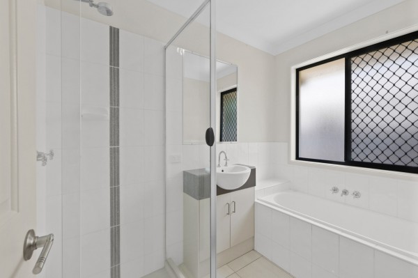 Main bathroom with a full-sized bathtub and separate shower - perfect for families