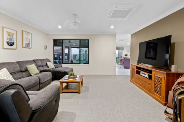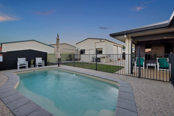 The heart of the home is the open-plan kitchen, dining and living area that connects seamlessly to a generous outdoor patio. Here, a custom-built BBQ kitchen, sparkling saltwater pool and low-maintenance surrounds create the ultimate setting for weekend entertaining. Add in a high-clearance powered shed, fresh upgrades throughout, and plenty of storage, and this home truly delivers on lifestyle and convenience.
