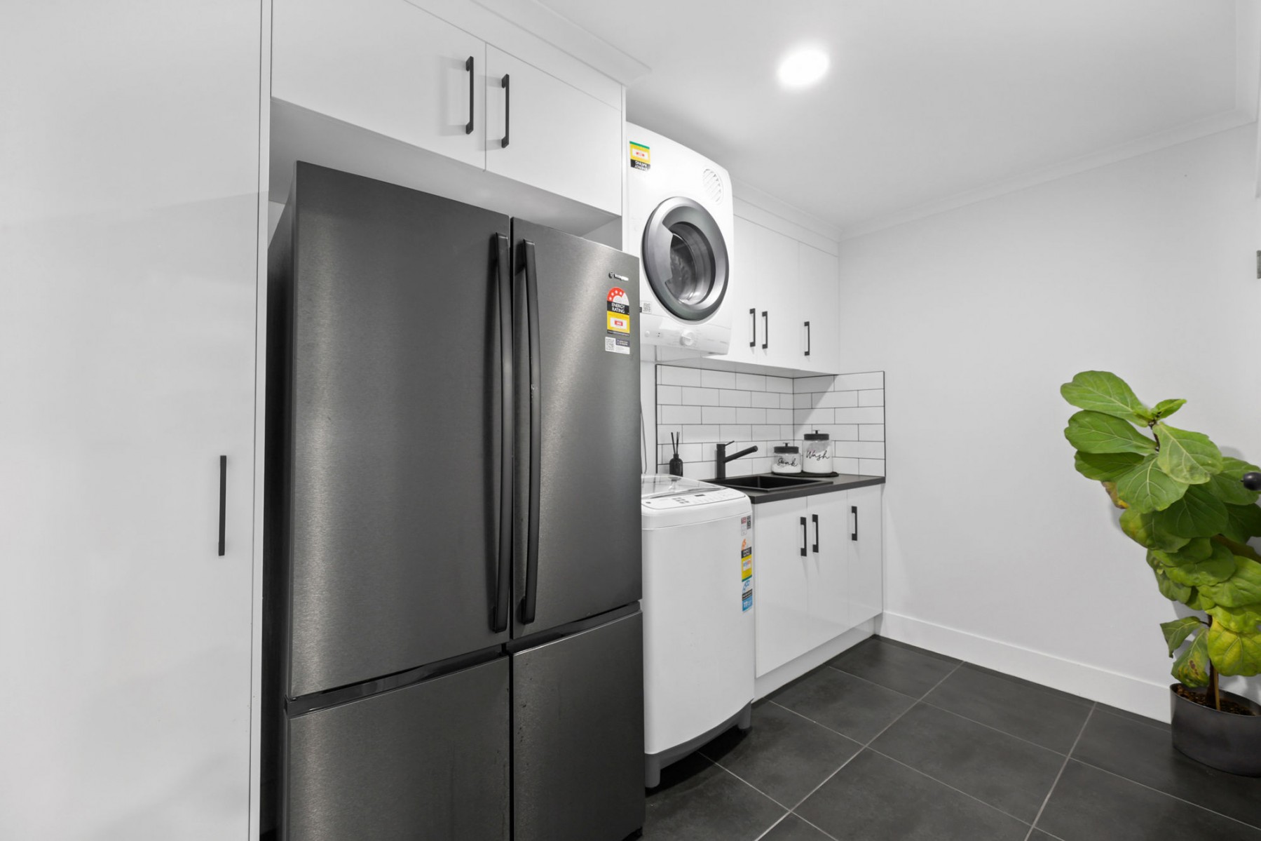 - The Kitchen contains a large pantry that connects to a generous laundry room