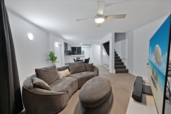 - Large air-conditioned family room with lounge and dining areas leading out to a spacious balcony that overlooks the river and would be perfect for al-fresco dining, a cool drink, a morning coffee or a weekend barbeque