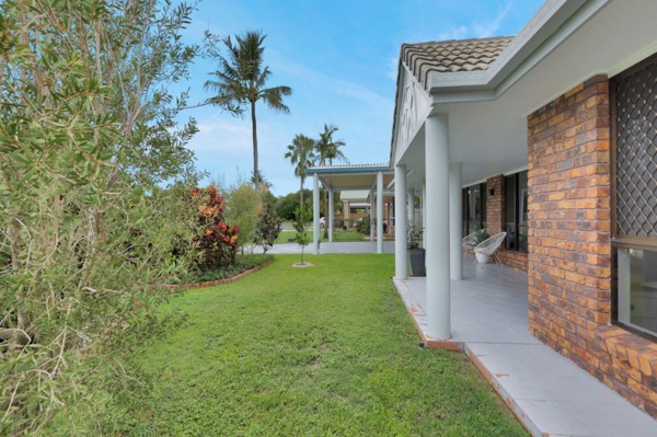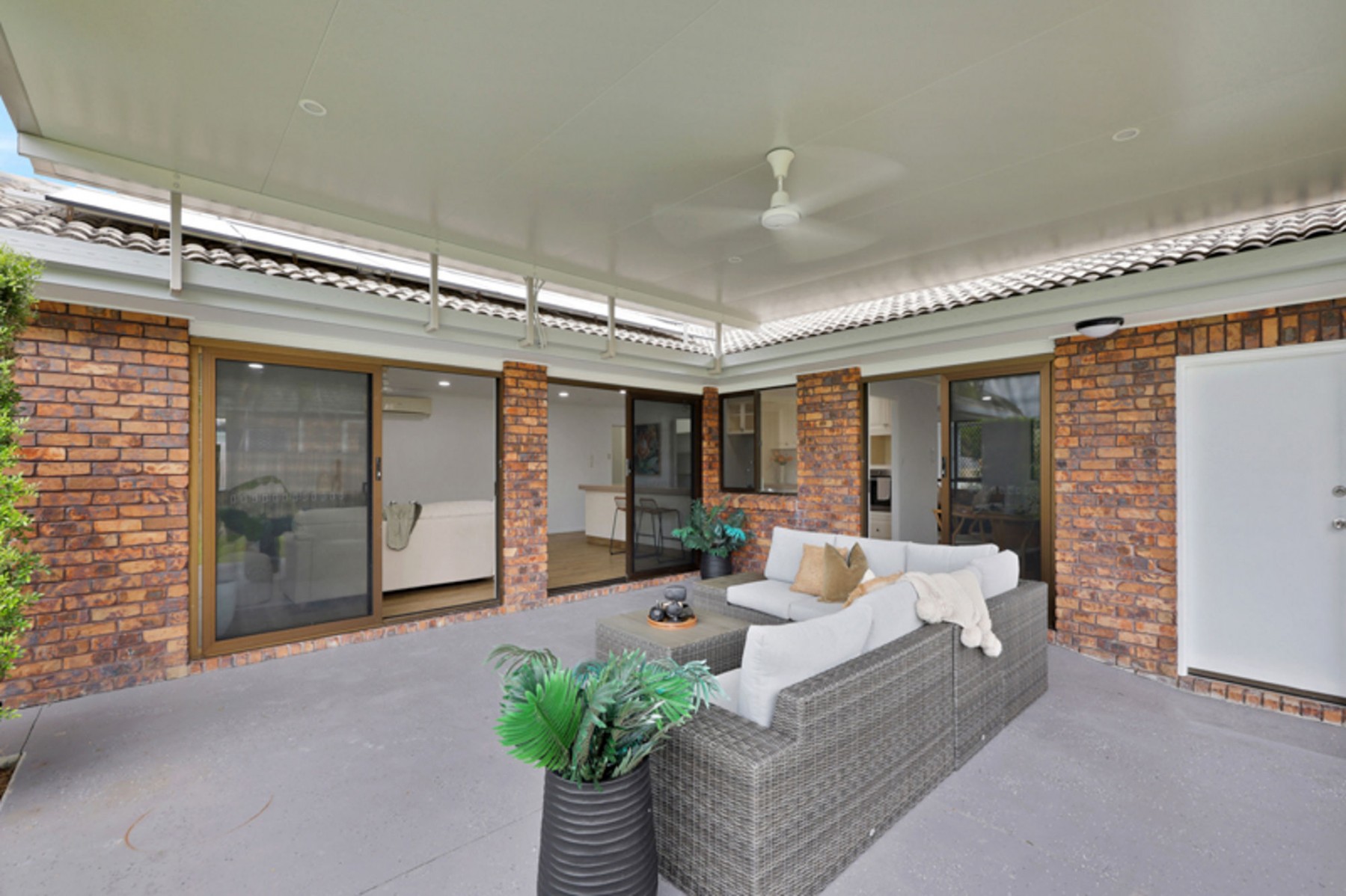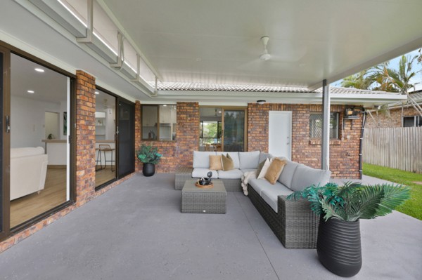 - Covered outdoor entertaining area with flyover roof for improved airflow, complete with ceiling fan and lighting