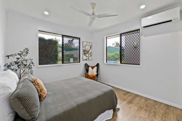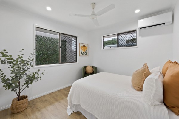- Four bedrooms, all with air conditioning, ceiling fans and built-in wardrobes