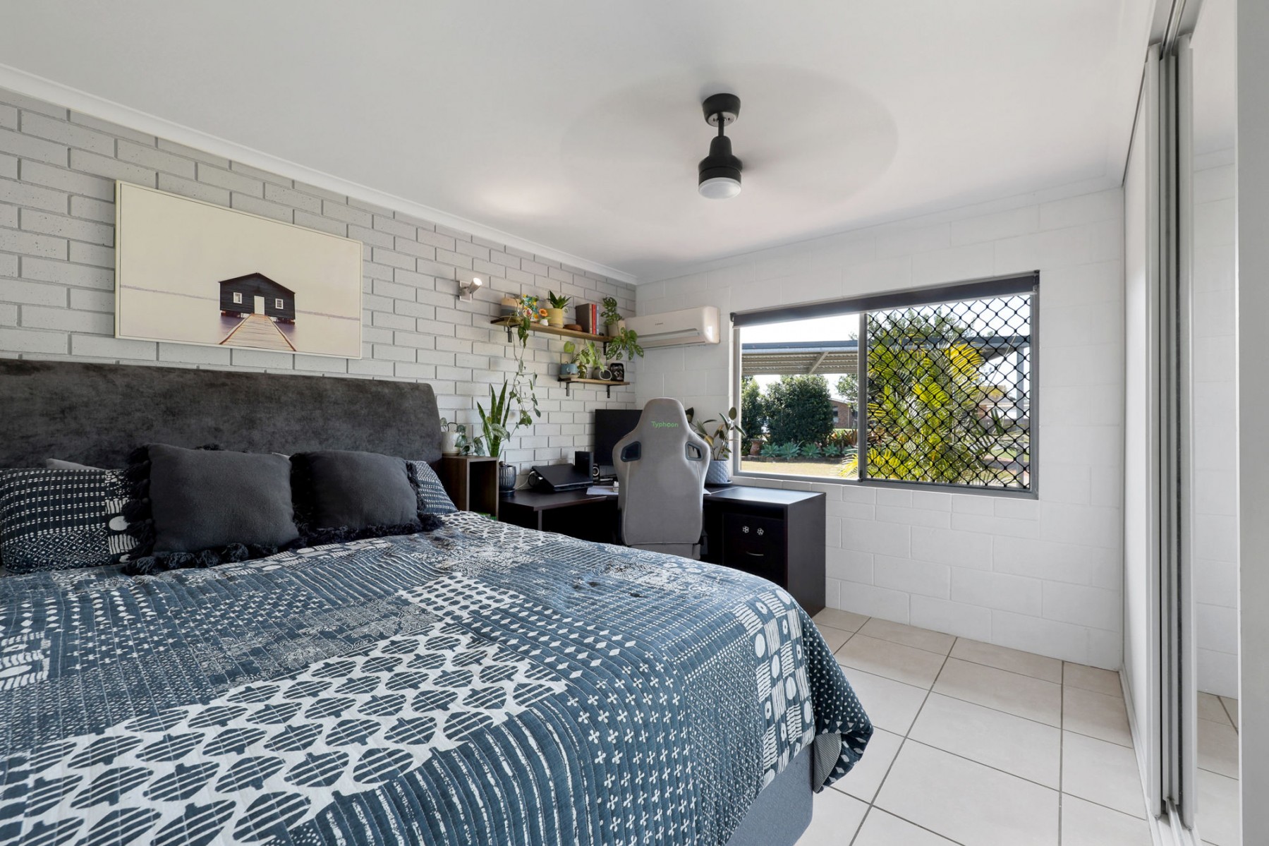 - Main bedroom is oversize with air-conditioning and huge walk-in robe