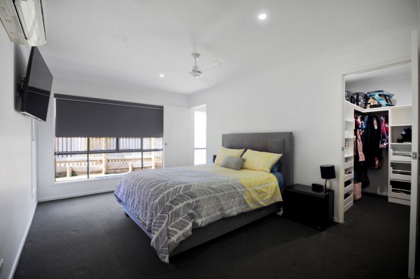 - Master bedroom with air conditioning, walk-in robe and an ensuite featuring a walk-in shower and large vanity.