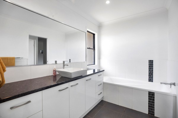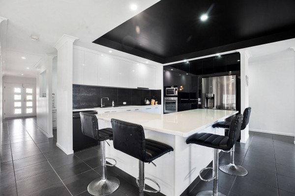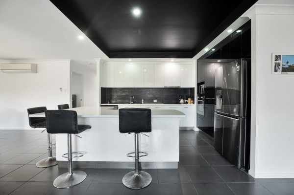 - Striking kitchen with island bench, black and white 2PAC cabinetry and plenty of storage