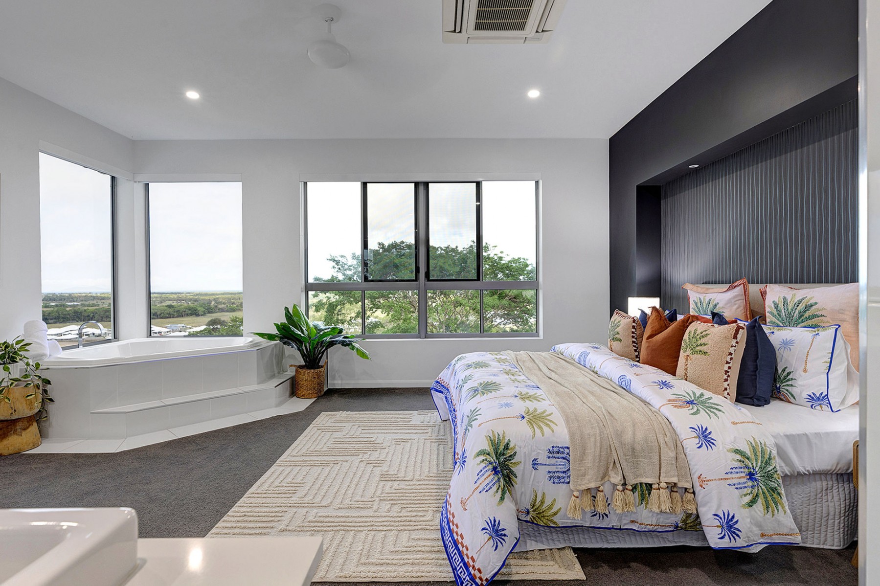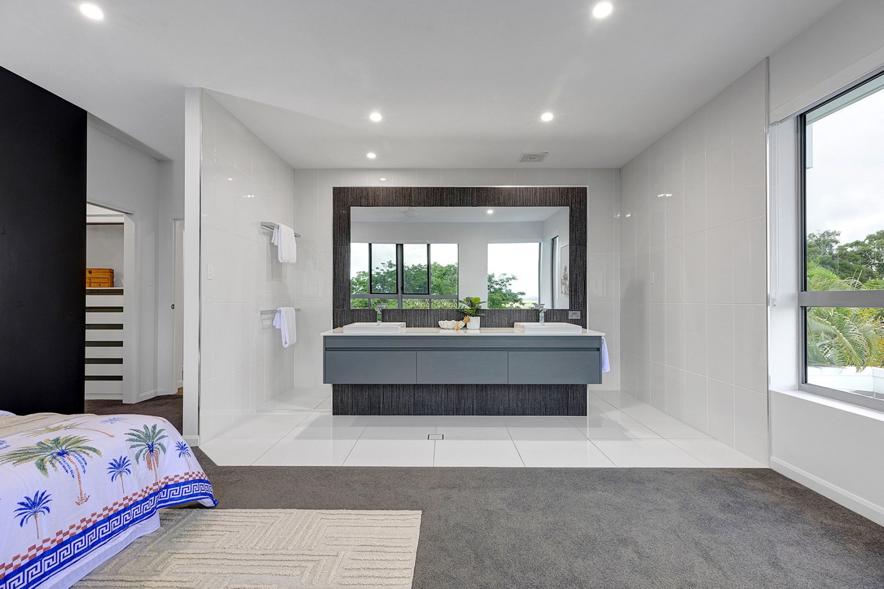 - Master suite with spa ensuite, dual vanity and large windows framing the view