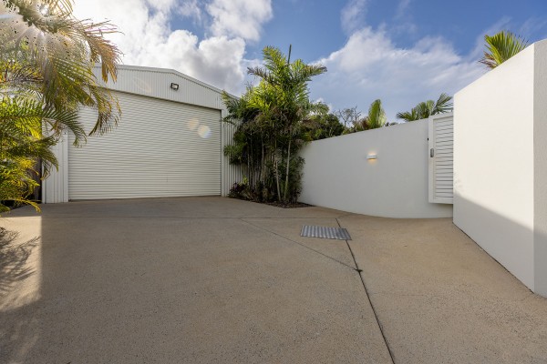- 12x7m high-clearance shed with concrete side access driveway - perfect for boats or caravans