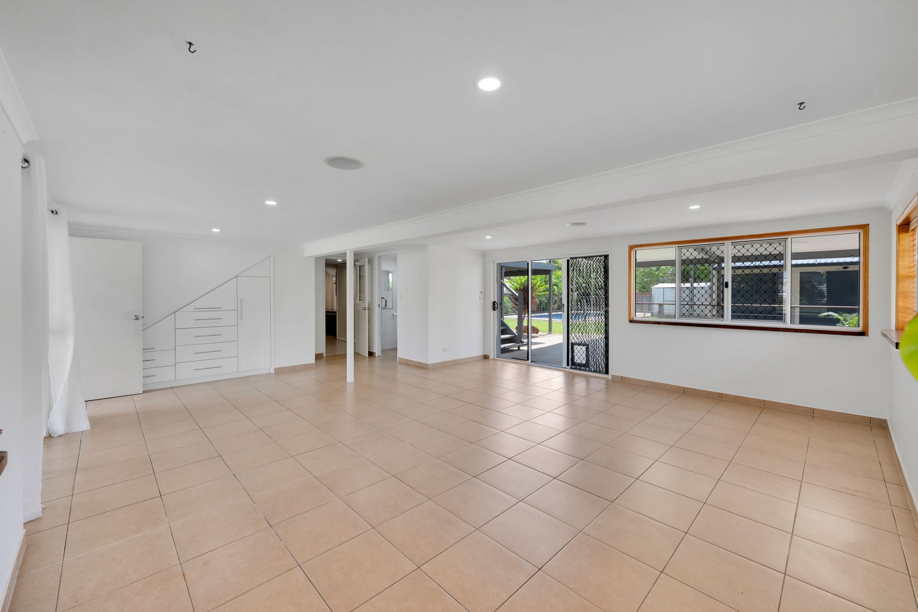 • Expansive open-plan living zone with built-in storage