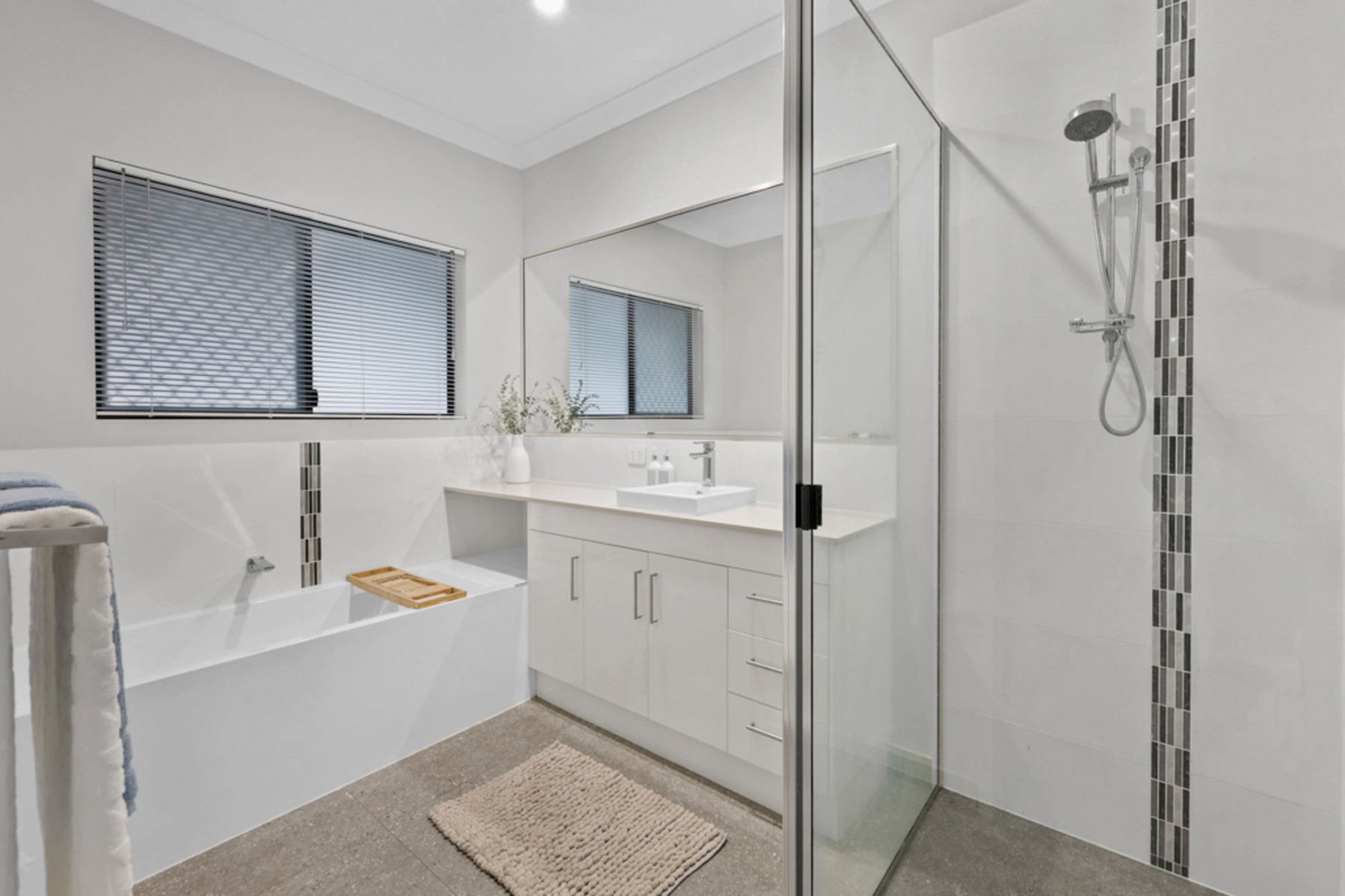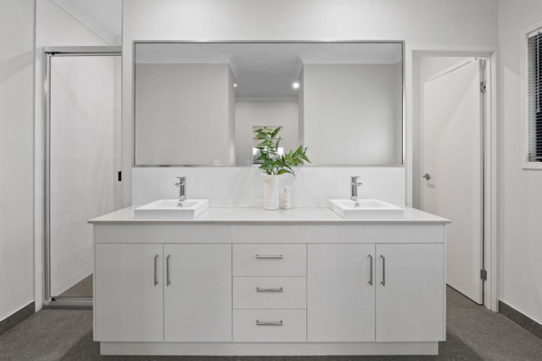 - Master suite with walk-in robe, large ensuite, stone vanity benchtops and insulated bedroom walls for heat and sound.