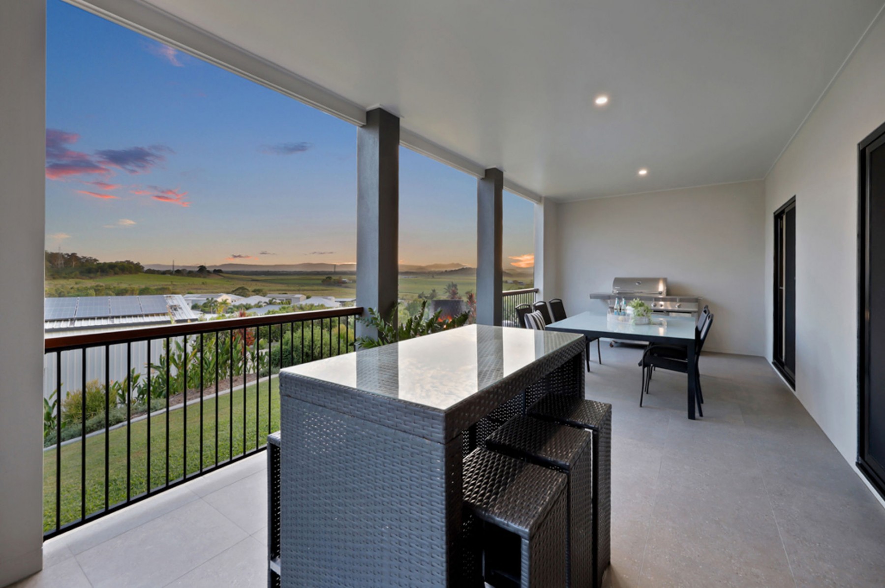 - Second verandah overlooking the pool, yard and rural backdrop.