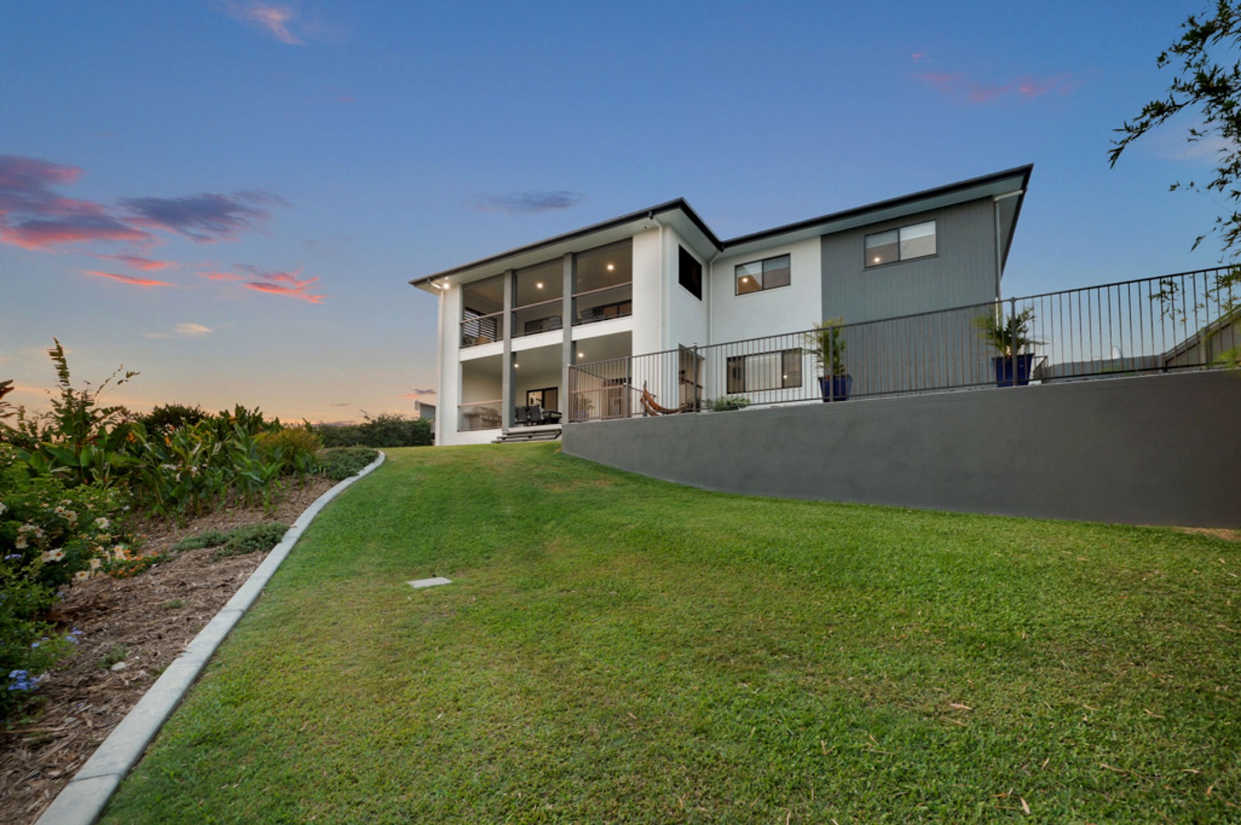 - Two-level, 528sqm under roof design maximising rural outlooks, natural breezes on a 2,081sqm sloping block.