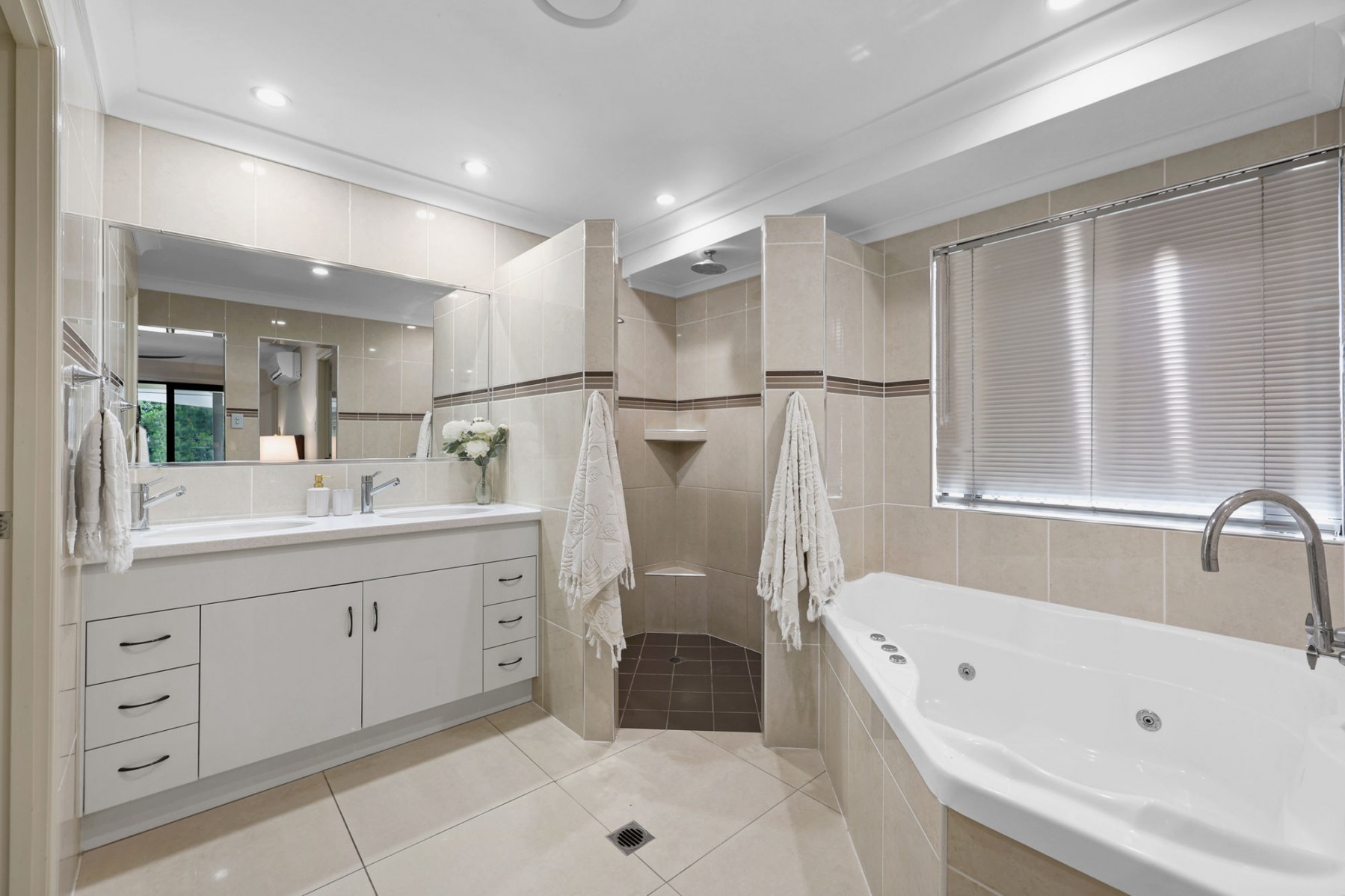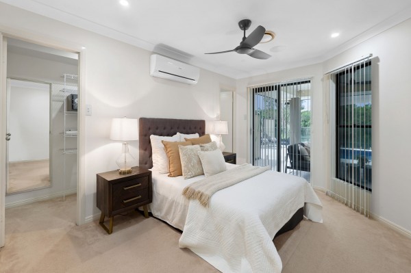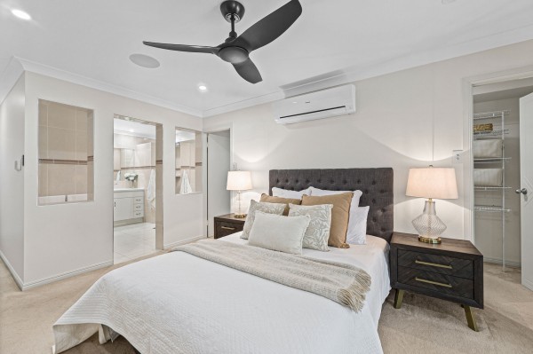 The master suite is a special space with spa ensuite, double vanities and walk-in robe, all whilst opening up and overlooking toward the pool, entertaining area and nature aspect behind.