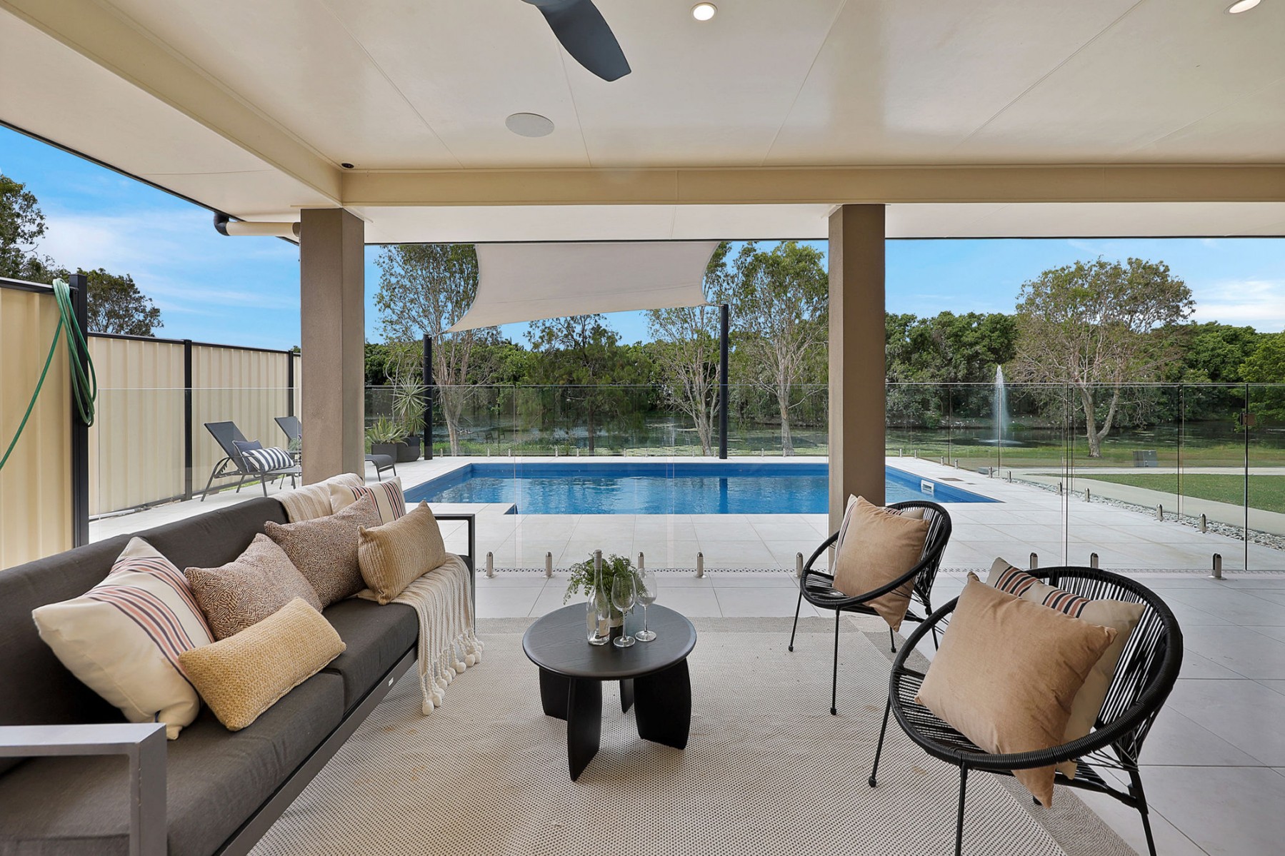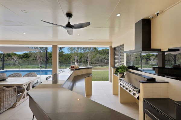The outdoor entertaining area is equally impressive-an expansive covered zone with built-in BBQ, granite bar top, bar fridge space, outdoor sink, plantation shutters, outdoor fans, brand new outdoor rangehood and TV connections. Designed for year-round entertaining, it's the ultimate place to relax. The stunning pool is near new and is surrounded by quality glass fencing, allowing uninterrupted views of the sanctuary behind, you would not no you are in suburbia.