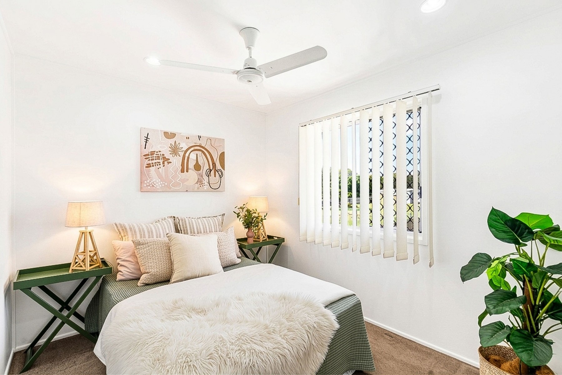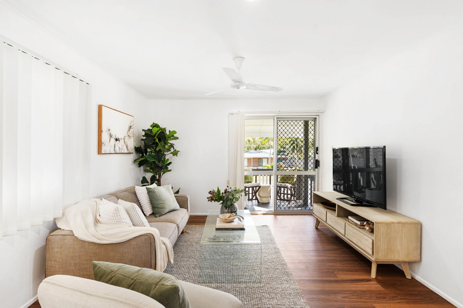 -Air-conditioned main living area filled with natural light, complemented by updated flooring and fresh, modern paint throughout