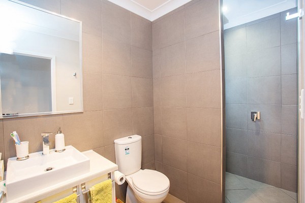- Main bathroom is located near the bedroom and has a large shower recess;