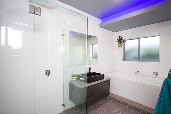 - The other bathroom contains a free standing bath and stylish tiling from floor-to-ceiling