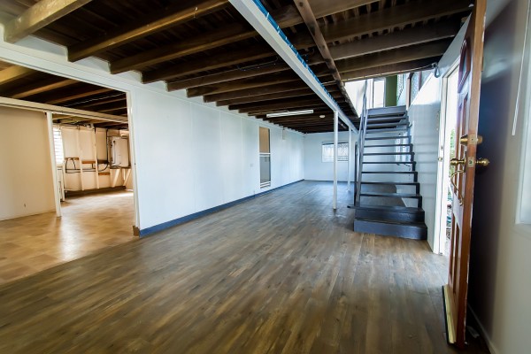 - Downstairs there is a huge space that is fully enclosed and has a spacious open area that could be a rumpus room or used for a home business
