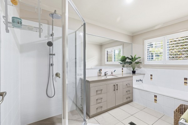 - Spacious main bedroom with alfresco access and a beautifully renovated ensuite featuring floor-to-ceiling tiles and an oversized walk-in shower
