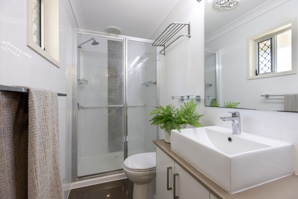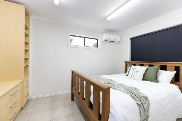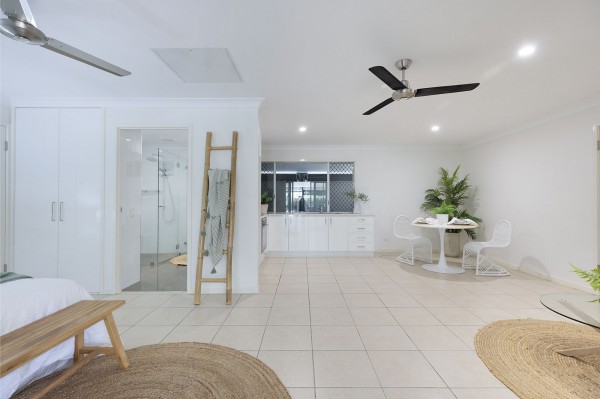 - Self-contained, disability-compliant granny flat with separate access, tiled living area, kitchen, floor-to-ceiling tiled bathroom and open-plan suite-style bedroom