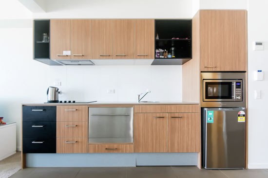 - Kitchenette with dishwasher, fridge, stove and micro-wave