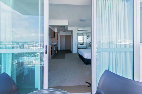 The fully furnished unit with a balcony in the Oaks Rivermarque ticks all the boxes: the convenience of being located in the CBD, a stylish contemporary design, and the building itself has a terrific pool, a gym, a restaurant and off-street parking.
