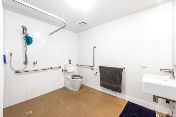 • Big bathroom that is equipped with hand-rails to accommodate an older person