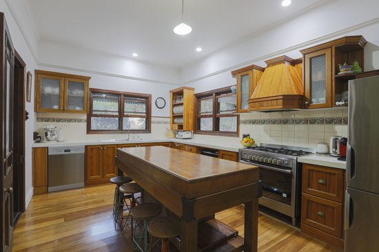 - Generously sized kitchen and dining with heritage style cupboards, rosewood timber benchtops and dishwasher
