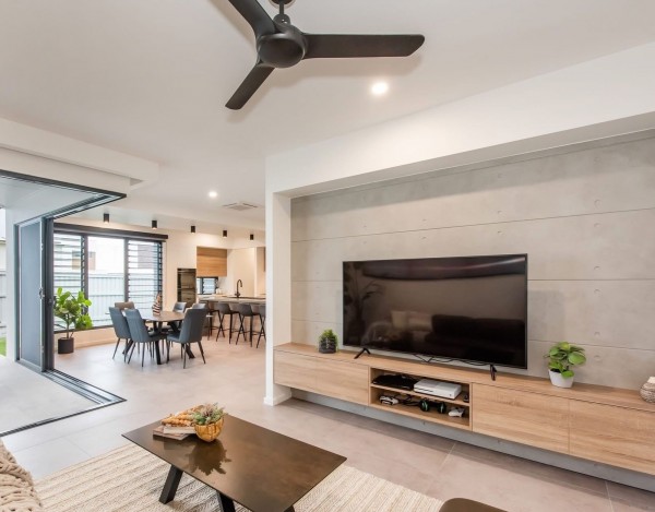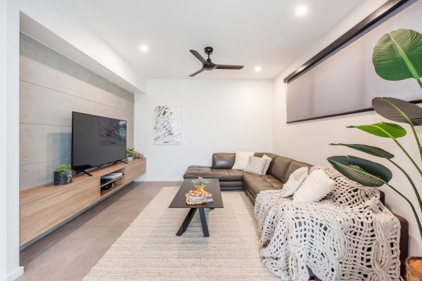 - Private media room separate from the main living area with wall hung entertainment unit.