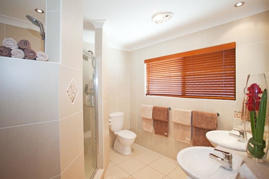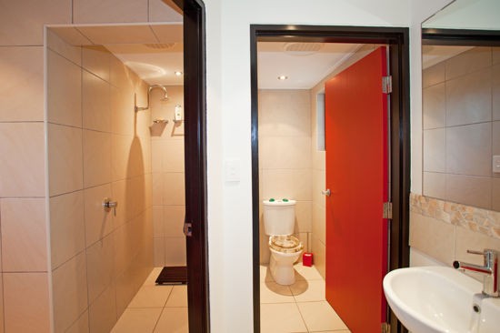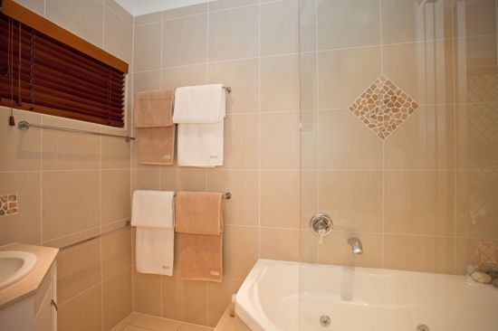 - Two bathrooms featuring wall to ceiling tiles