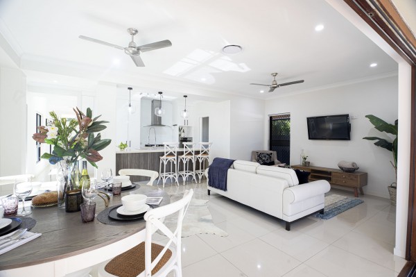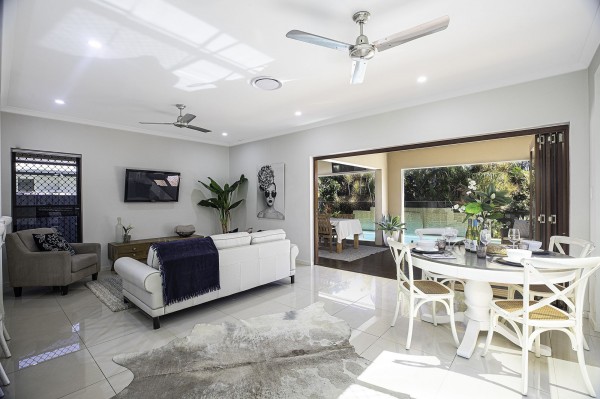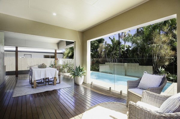 - The open plan living area is expansive and flows onto the poolside timber alfresco dining area, outdoor BBQ and bar fridge make this vibrant space perfect for entertaining all year round