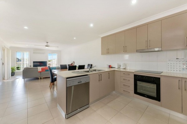 - Spacious, open plan kitchen, dining, and family room with split-system air-conditioner.