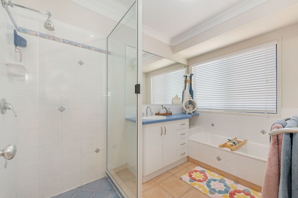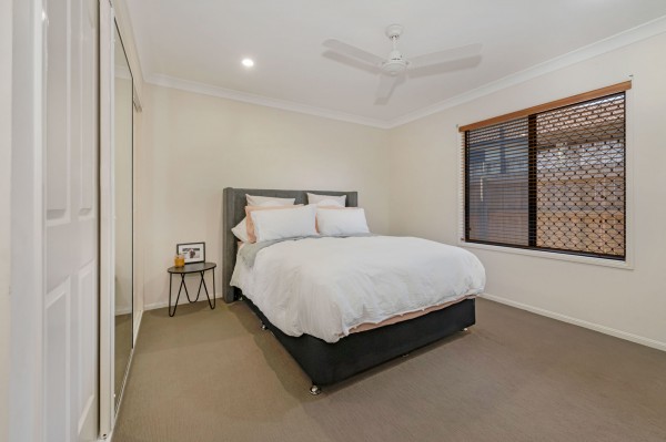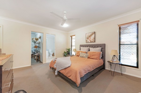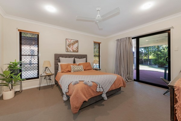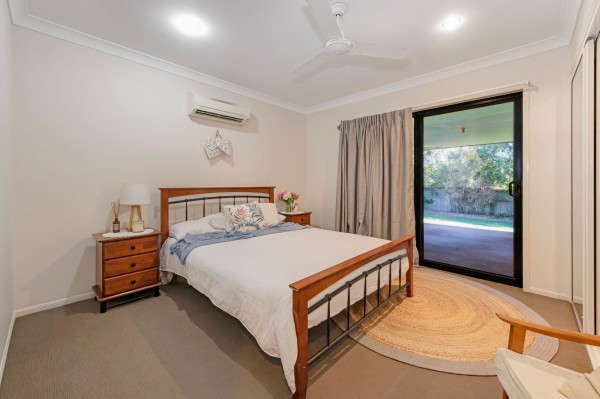 - Four bedrooms, all with split-system air-conditioners, fans and built-in wardrobes. The main bedroom has a walk-in wardrobe and an ensuite. It also has sliding door access out to the entertainment area