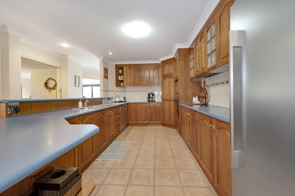 - Large kitchen with quality timber cupboards, a dishwasher, pantry and large breakfast bar