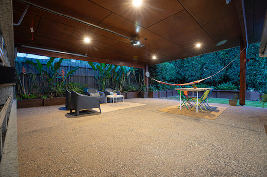 - Large private pavilion style entertaining area surrounded by tropical landscaped gardens