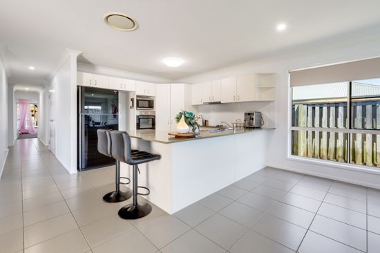At 280 sqm (approx.) under roof, there is more than enough room, boasting four bedrooms and an additional office/5th bedroom, two bathrooms and multiple large living zones. The kitchen in a classy and timeless neutral colour palette exhumes the same size attributes and quality with its stone benchtops. A central covered outdoor entertaining area is accessed from three indoor locations and the fully fenced backyard will complete the sought after design package.