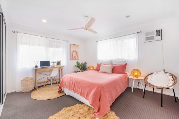 - Two air-conditioned bedrooms with fans & built-in wardrobes