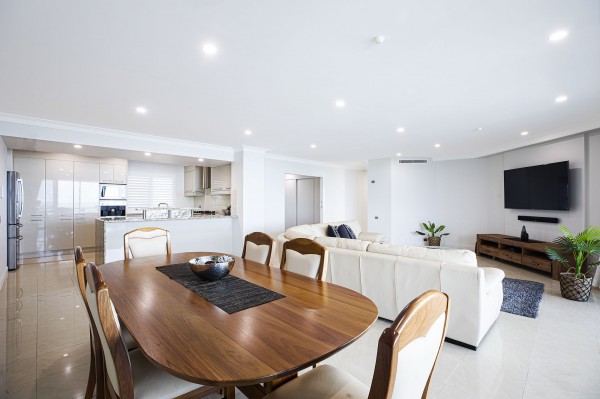 - Spacious open plan living and dining area with built in cabinetry plus floor to ceiling sliding glass doors for picture perfect views over the Marina
