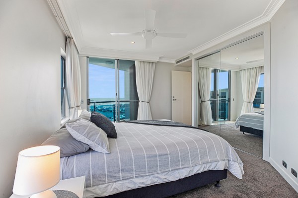 - The spacious main bedroom greets you with a 3-way access to the bedroom, ensuite with double vanity, walk in wardrobe and private balcony with stunning waterfront views