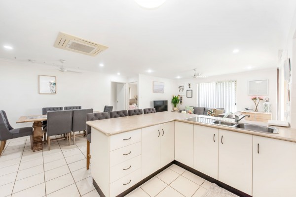 - Two tiled and air-conditioned living areas, including a lounge area that could be used as a kids play area plus the open plan family room that includes lounge and dining areas