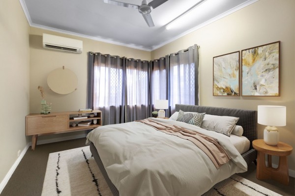 - Three large bedrooms include built-in robes, fans and air-conditioning